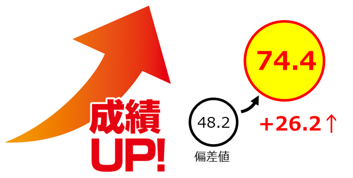 その後、模試での最高成績は偏差値74.4まで上がり、納得のいく成績まで上がりました。